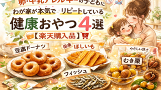 卵・牛乳アレルギーがある子どものおやつ選びに悩んでいませんか?たんぱく質・カルシウム不足が気になる方へ。ご飯前でも罪悪感なく出せる、楽天で何度もリピートしている安心・健康おやつ4選を紹介します。実際に食べて感じた正直な感想もまとめています。