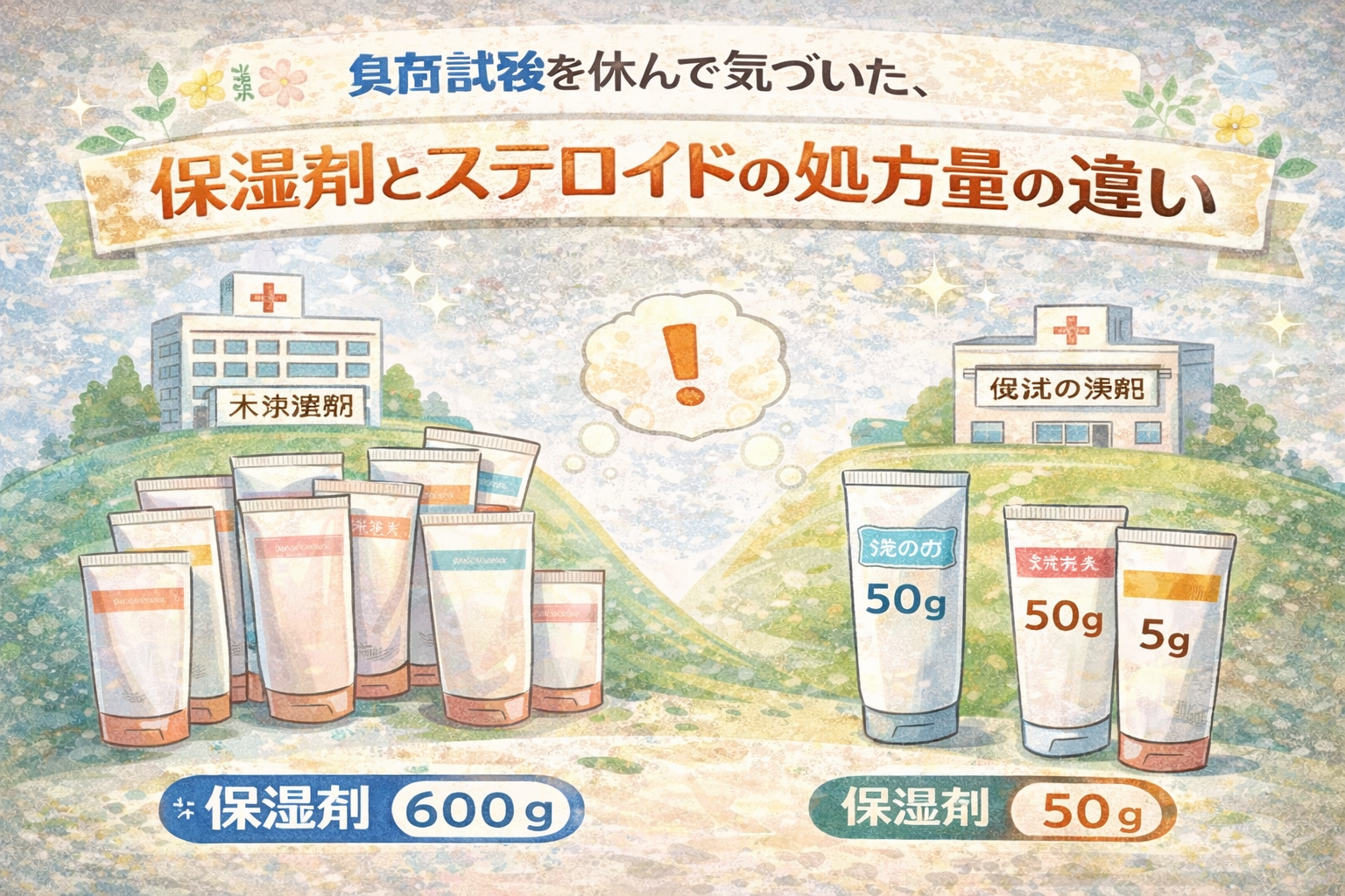 それは 大学病院と地域のかかりつけ医では、保湿剤やステロイドの処方量が大きく違う ということです。