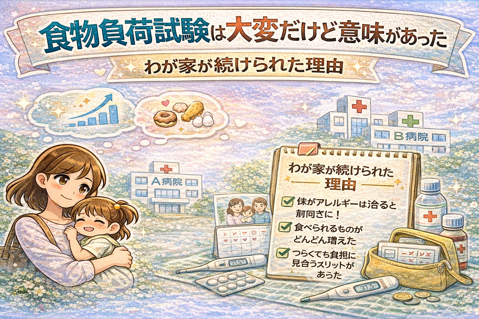 負荷試験中に実際にアレルギー症状が出たときの様子 について書いていきたいと思います。